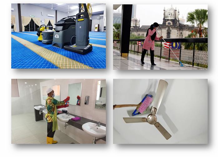 We provide general and deep cleaning of the masjid/surau/musolla for internal and external areas. The work scope includes carpet vacuum, sweep, and scrub floors, clean ceiling/wall fans, sanitize surfaces, and restock items, such as toilet paper, paper towels, and other supplies. For external areas works includes grass cutting/trimming, tree planting & pruning, fertilizing and pesticide
